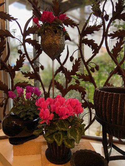 黒い鉢はシクラメンが引き立ち素敵に見えます