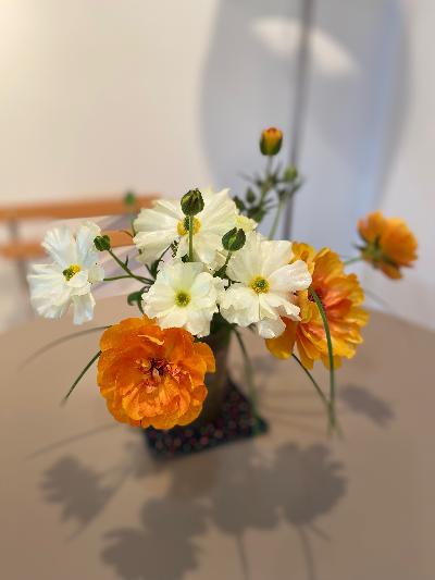 白とオレンジのワックスラナンキュラス