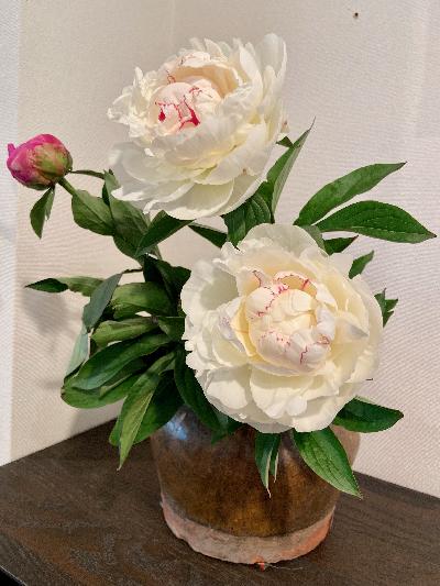 インドネシアの古い壺に芍薬 |