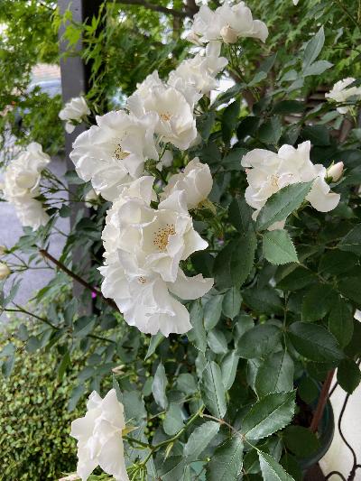 店の外では昨日の強風にもなんとか持ち堪えたようで薔薇が咲き始めたりコバノズイナも咲き始めました