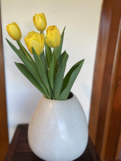 インドネシの古い壺に白椿 |